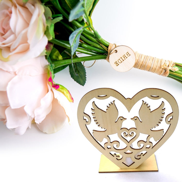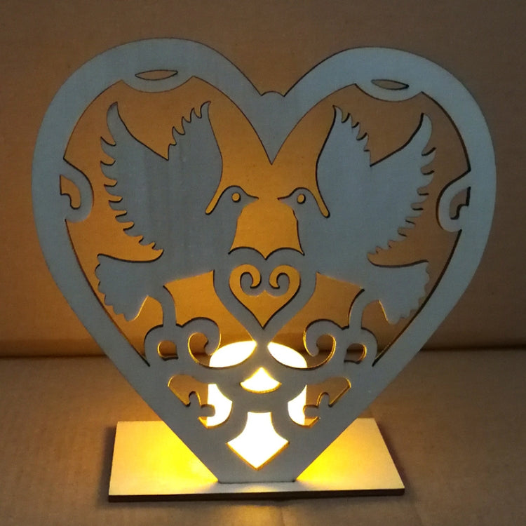 2 PCS Creative Heart Shaped Wooden Decoration Romantic Wooden Sign LED Candle Light(JM01453)