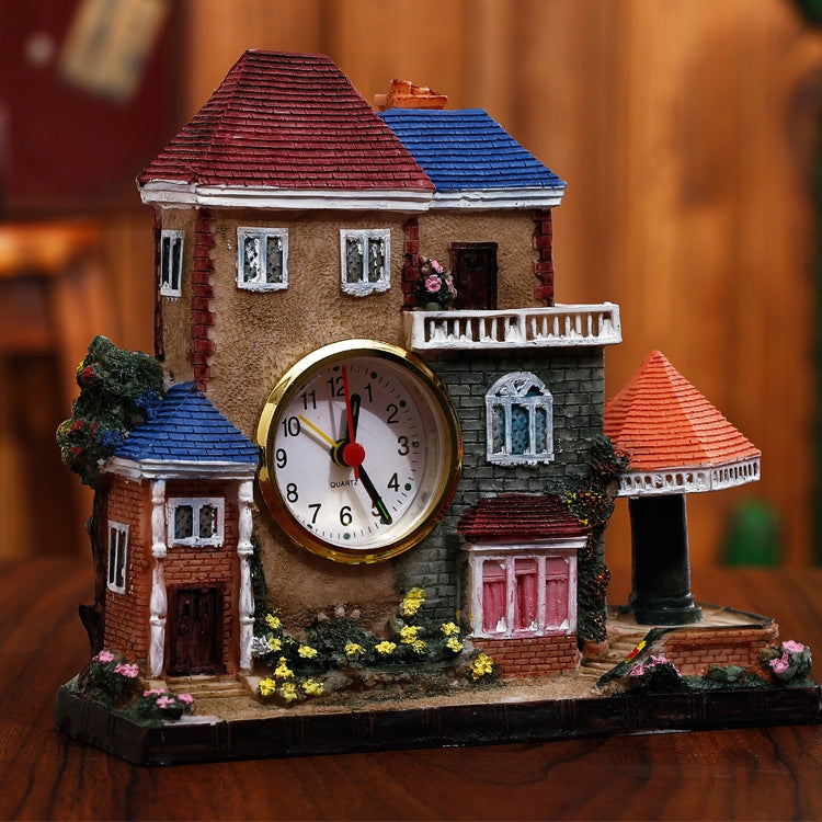 Big Castle Alarm Clock Villa Resin Craft Ornament(Right Pink Pavilion)