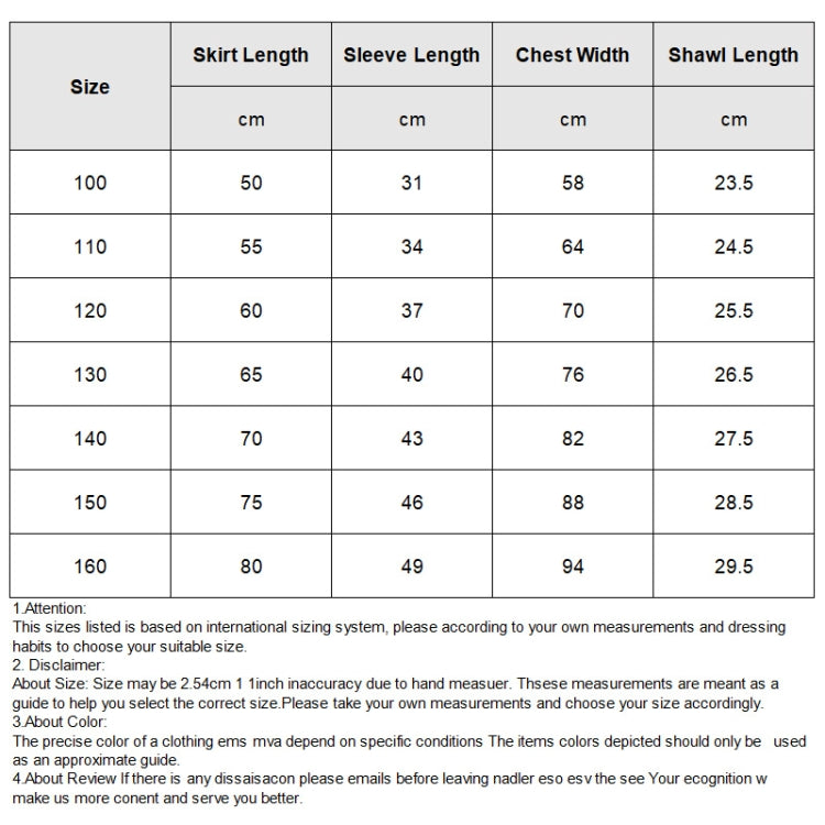 7. Size (for height): 100cm/110cm/120cm/130cm/140cm/150cm/160cm