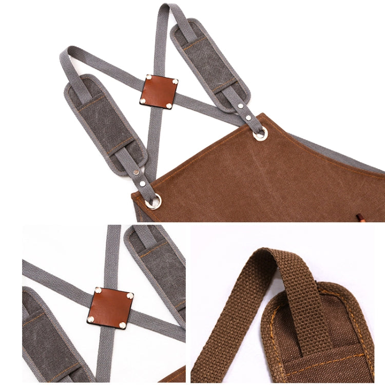 Denim Apron Barber Milk Tea Shop Waiter Overalls(Gray-yellow Shoulder Strap)