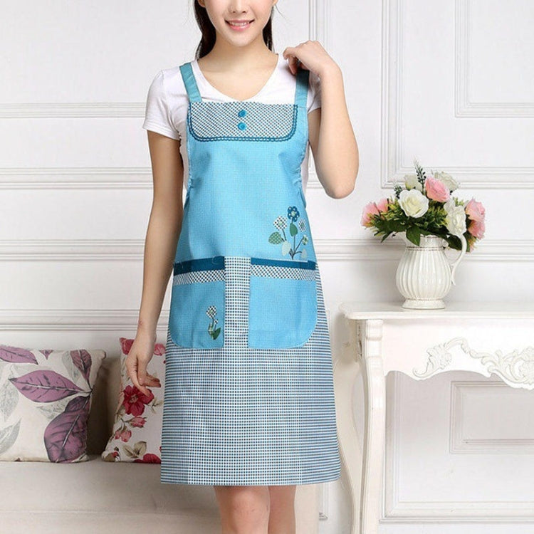 Home Adult Sleeveless Waterproof Grid Anti-oil Aprons with Double Pocket(Green)