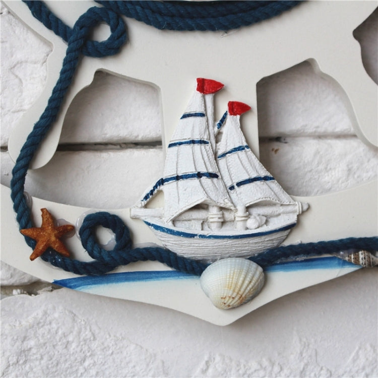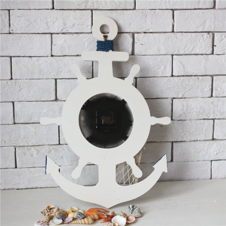 Mediterranean Style Blue And White Rudder Clock Wall Clock Home Living Room Bedroom Decoration Wooden Crafts, Style:Sailing