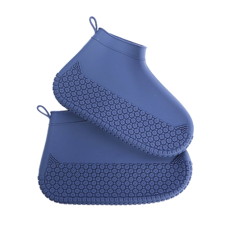 Silicone Non-slip Thickened Wear-resistant Waterproof Shoe Boots Cover, Size:M(Navy Blue)