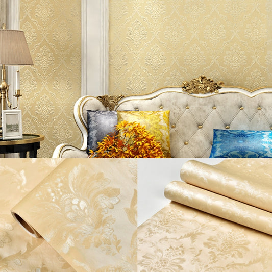0.6 x 5m Pastoral Style Damascus PVC Self-Adhesive Wallpaper Restaurant Milk Tea Shop Glass Stickers(Rice Yellow Splendid)