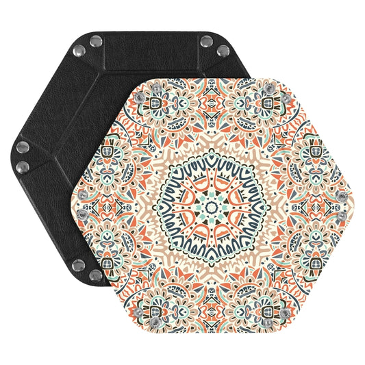 Hexagonal Desktop PU Storage Box Sundries Tray, Size:7 inch(Bohemian Orange)