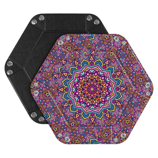 Hexagonal Desktop PU Storage Box Sundries Tray, Size:7 inch(Bohemian Purple)