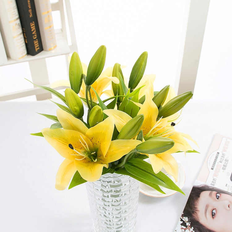 3 Branches Simulation Mini Lily Plastic Fake Flower Home Decoration Photography Wedding Supplies(Yellow)
