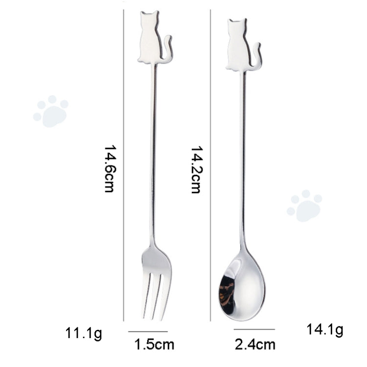 304 Stainless Steel Cartoon Pet Stirring Spoon Fork Fruit Fork Dessert Scoop, Style: Back Cat Fork (Gold)
