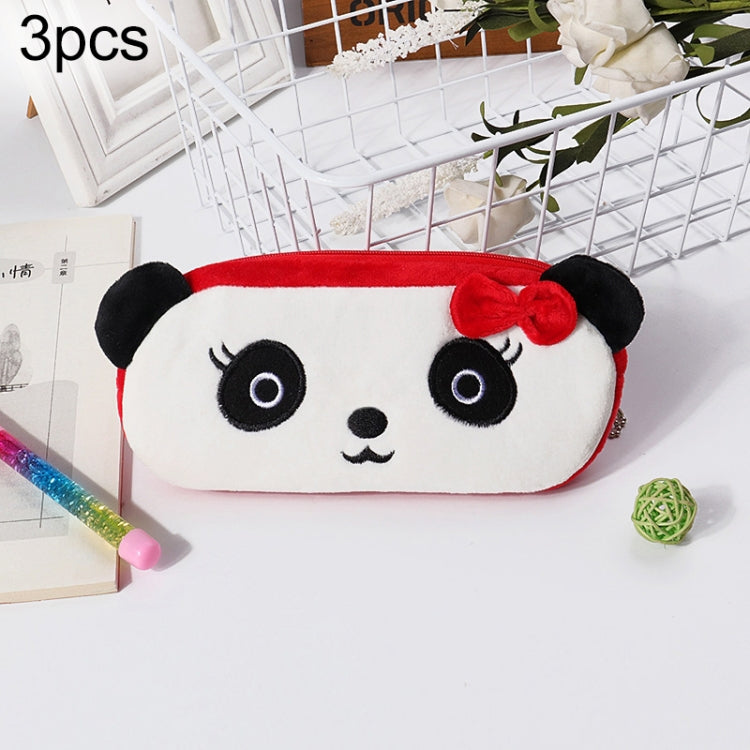 3pcs Children Cute Animal Plush Pencil Bag Stationery Storage Bag, Color: Female Panda