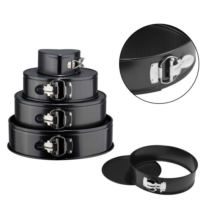 1. Set includes 1 piece heart-shaped 4-inch and 3-piece round 7, 9, 10-inch baking pans