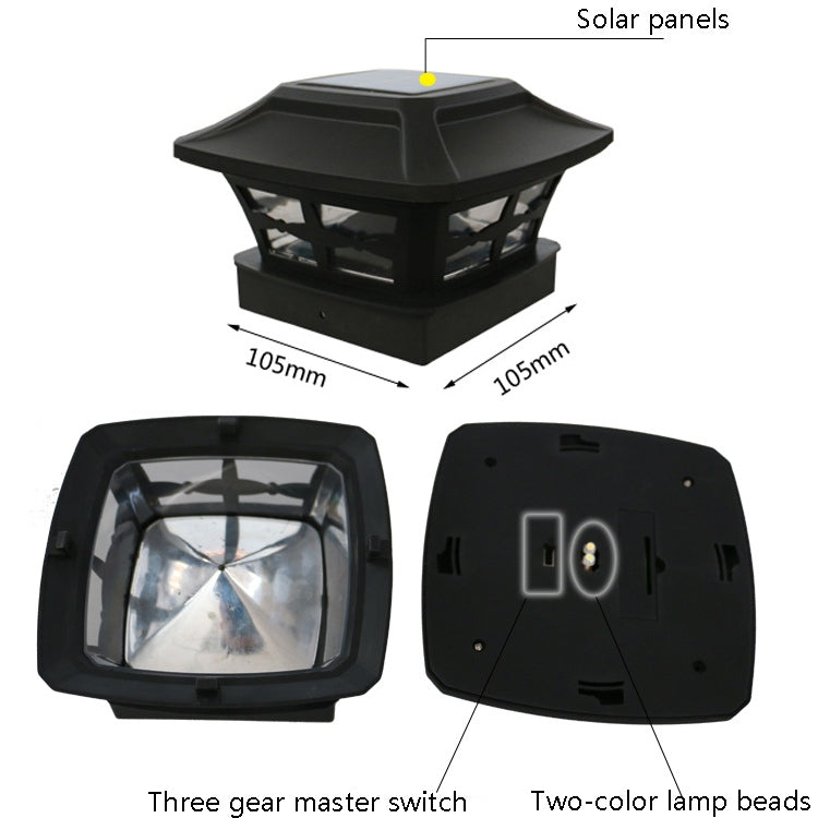 4 inch Outdoor Solar Column Lamp White + Warm White Light Garden Lamp(Black)