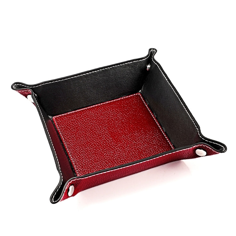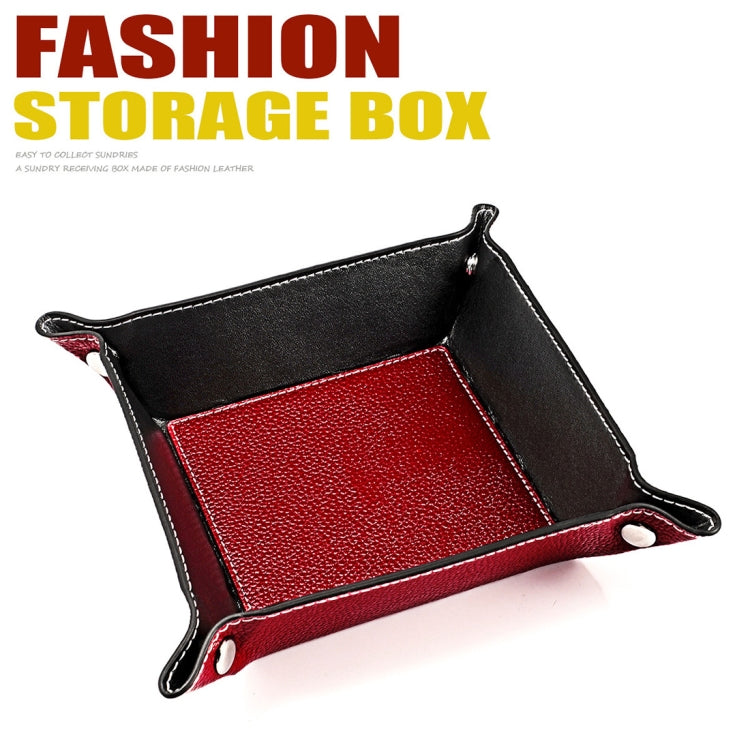 7001 Leather Desktop Square Storage Box Household Life Oddments Tray(Wine Red)