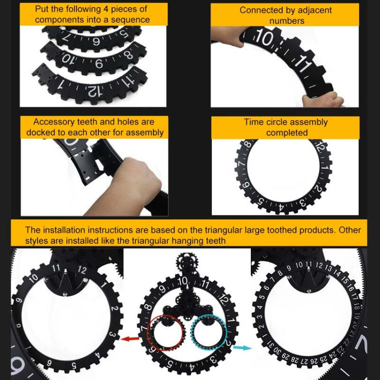 Home Simple European Style Triangular Mechanical Gears Wall Clock (Black)