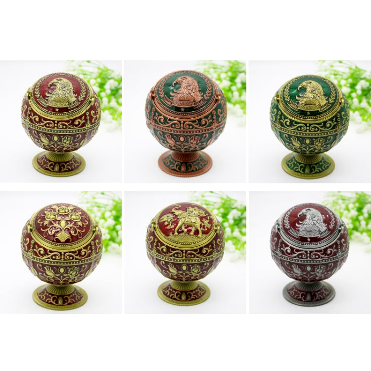 Metal Globe Ashtray With Lid Holiday Gift Tea Table Decoration(Ancient Copper Green Eagle)