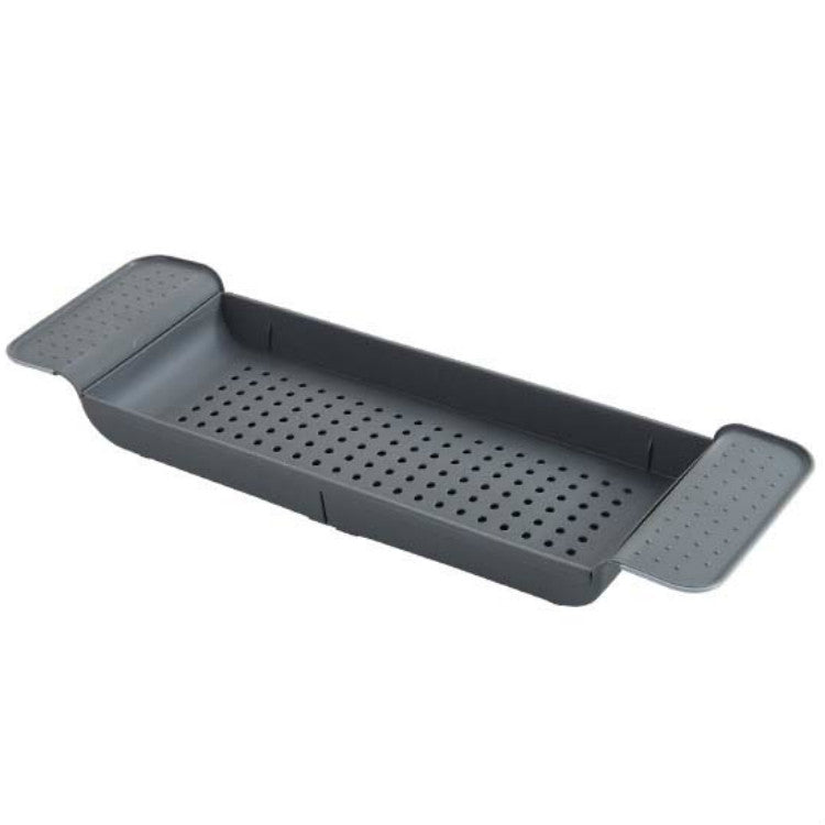 Retractable Drain Bathtub Rack Bathroom Plastic Soaking Tub Rack Bathtub Shower Storage Rack(Black+Gray)