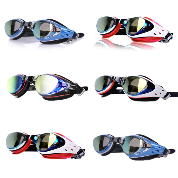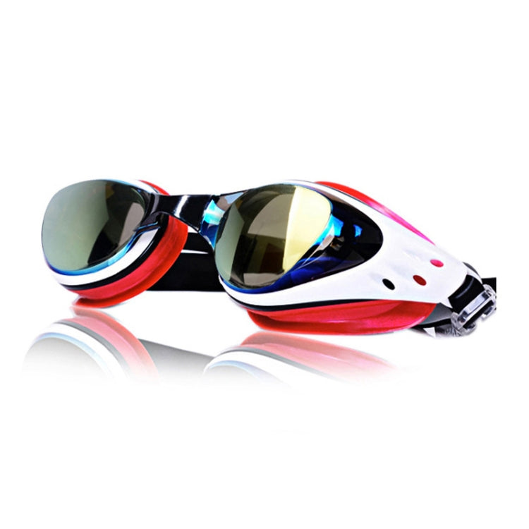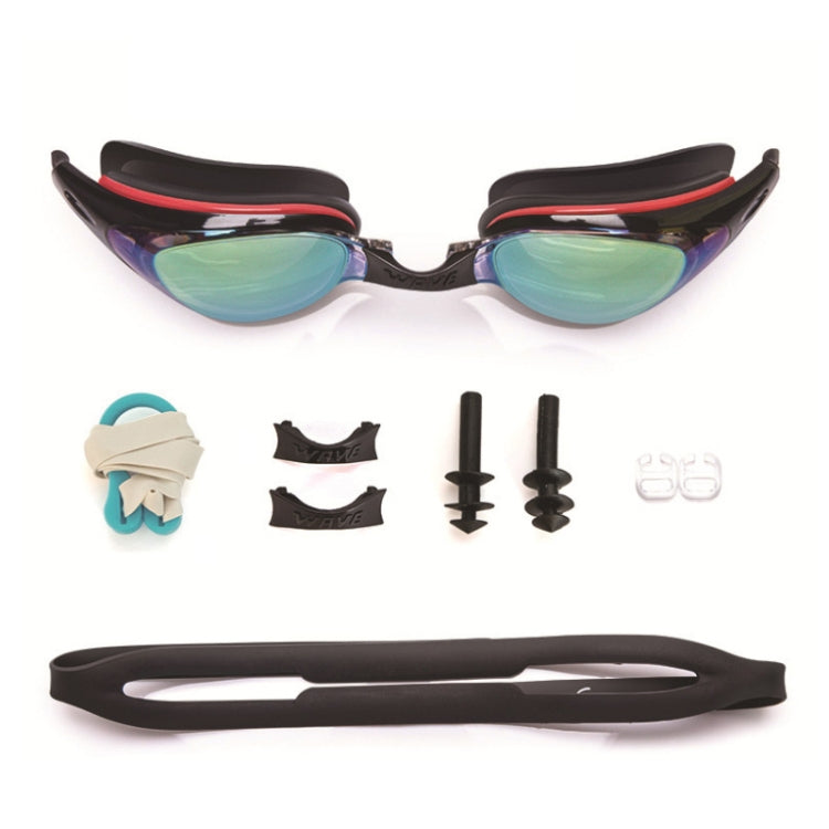 WAVE Electroplating HD Anti-fog Myopia Swimming Glasses, Color: Blue Red Optical