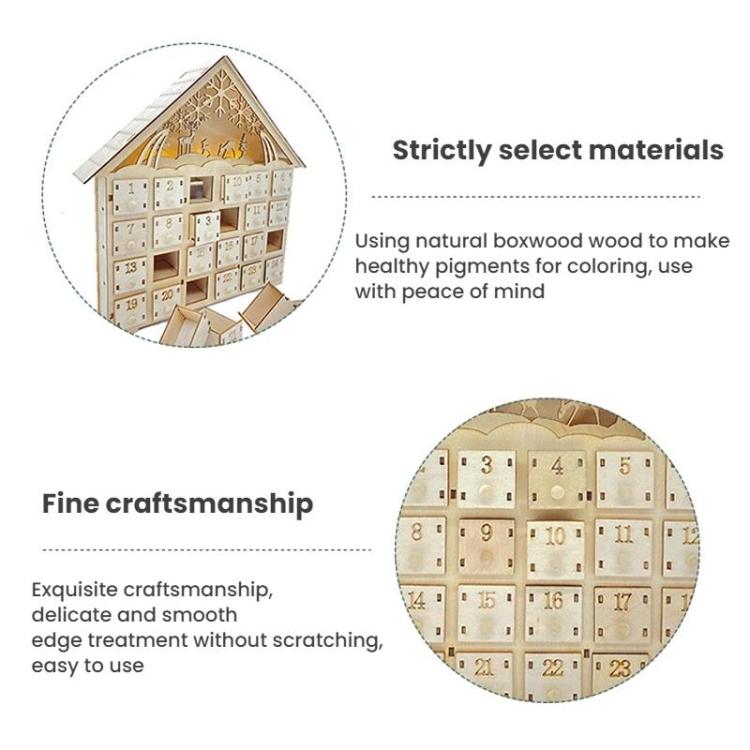 Wooden Christmas Decoration LED Lights 24-Day Countdown Calendar Ornament Gift Box(Deer)