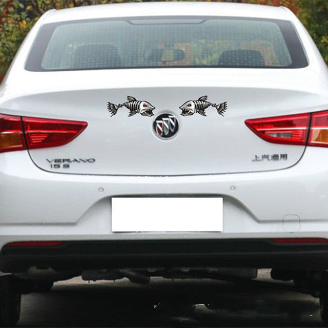 10 PCS Horror Skeleton Shark Fishing Daren Cover Scratch Reflective Waterproof Personality Body Sticker 15*6cm