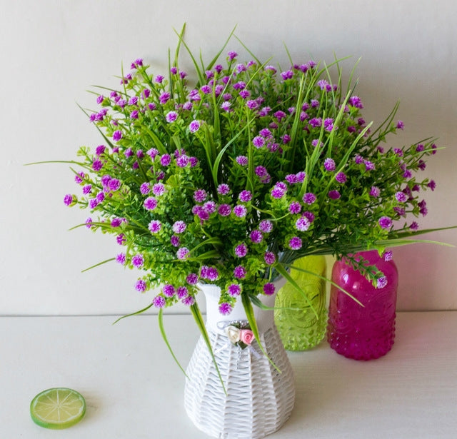 5 Branches Simulation Plastic Starry Rose Simulation Bouquet Home Decoration Flower(Red Lotus)