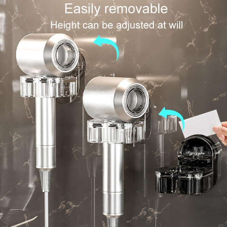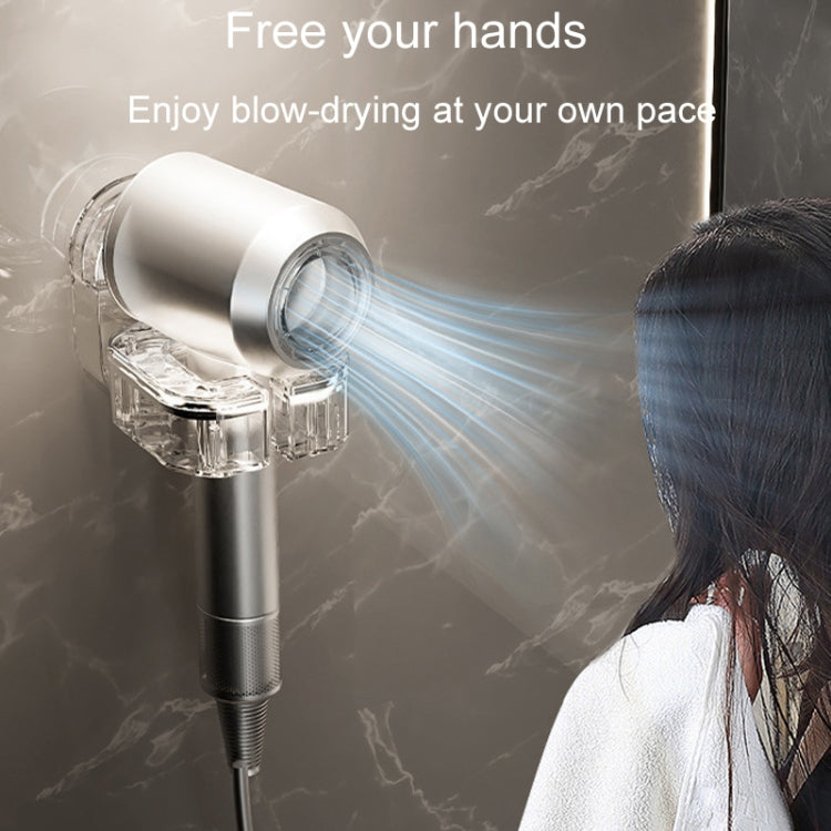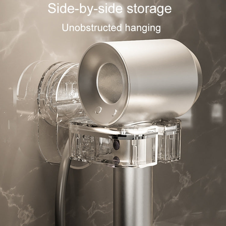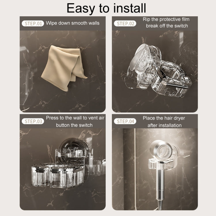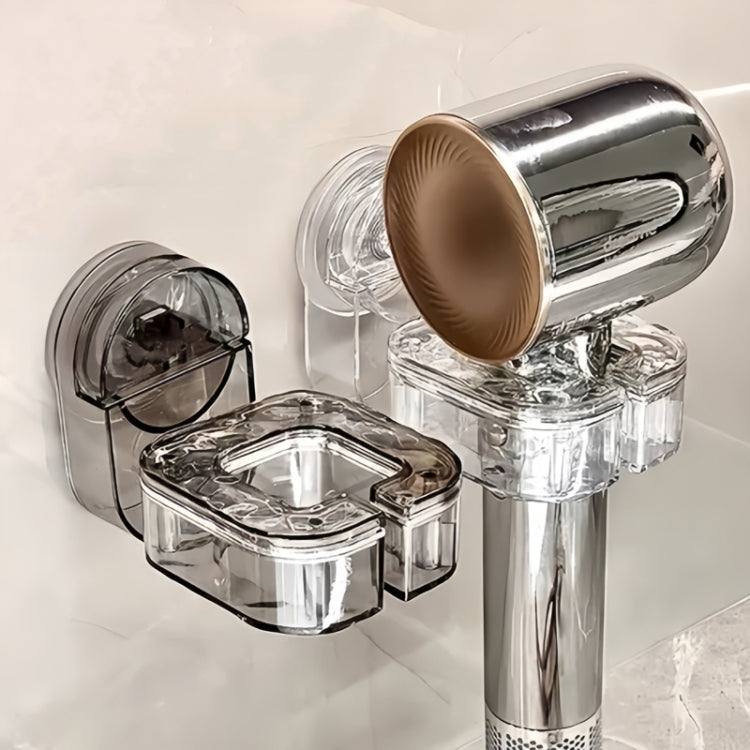Hair Dryer Storage Rack Bathroom Wall Mounted Suction Cup Swivel Organizing Bracket(Transparent Gray Silver)