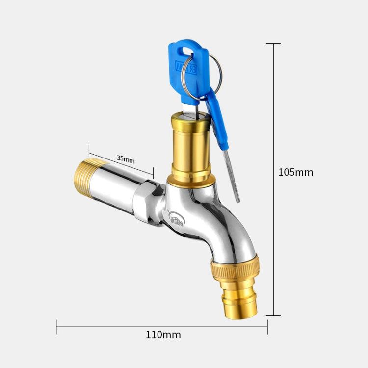 Household Faucet With Lock Outdoor Anti-theft 4 Minute Faucet, 规格: Key All Copper Long Washer Spout