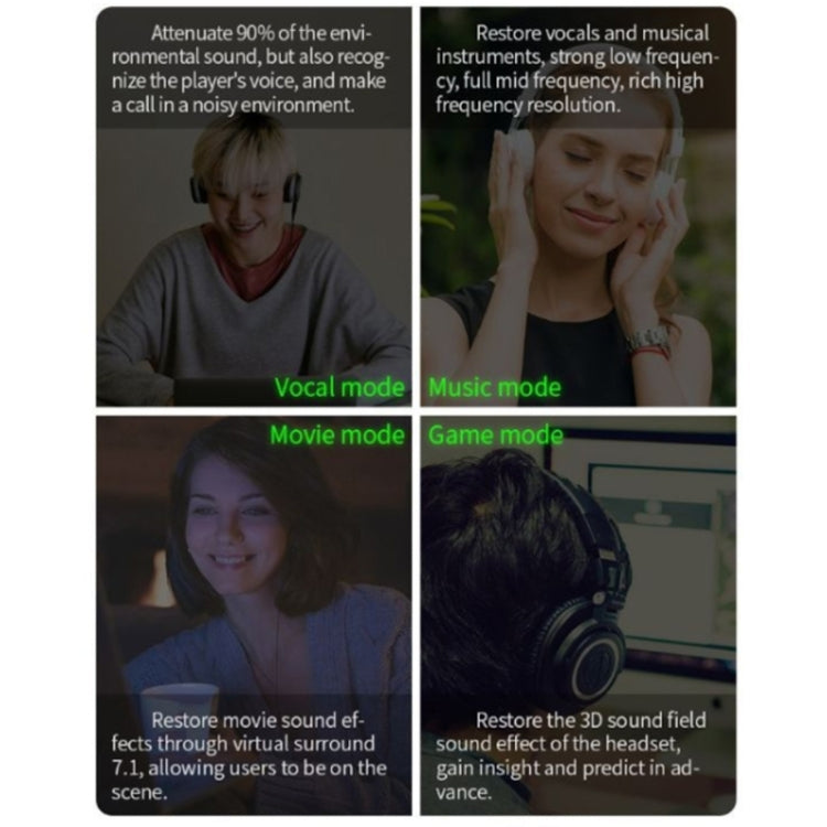 1. Human Voice Mode: Not only can it reduce 90% of the ambient sound, but it can also accurately recognize the players voice. Even in a noisy environment, you can communicate very clearly