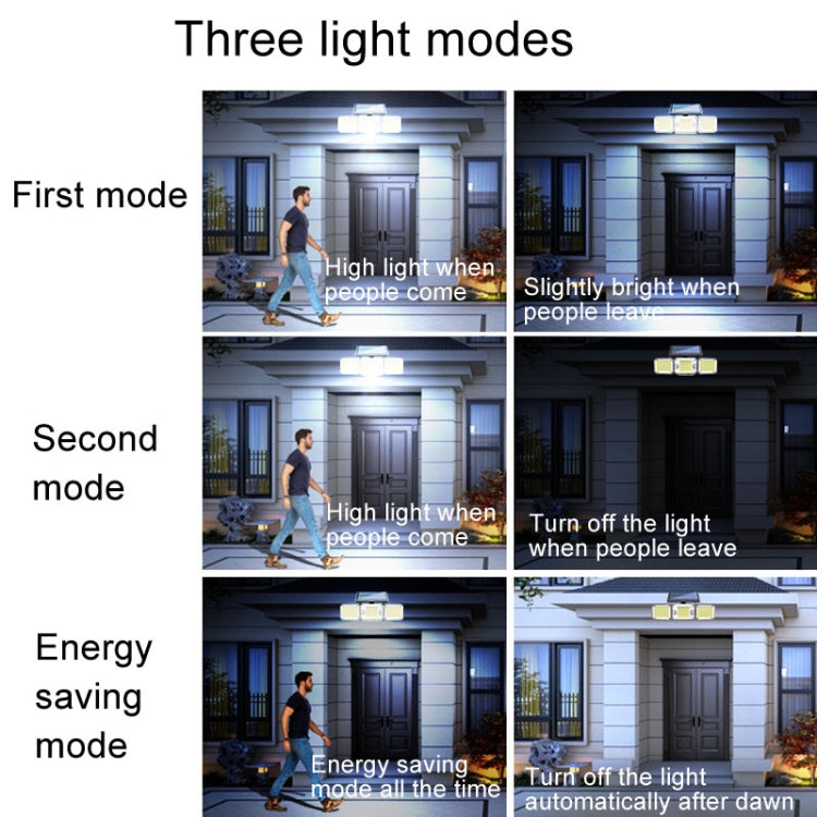Outdoor Triple Head 224LEDs Dual Sensor Solar Wall Light Rotating Body Sensor Light Garden Home Lighting, Style: Integral
