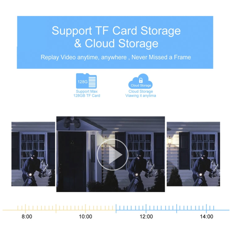 Motion detection, restore to default, Tuya Cloud, TF card storage continuous recording/event recording, maximum support 128G TF card