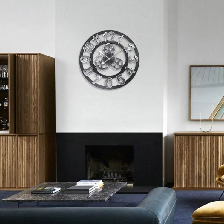 Retro Wooden Round Single-sided Gear Clock Arabic Number Wall Clock, Diameter: 30cm (Silver)