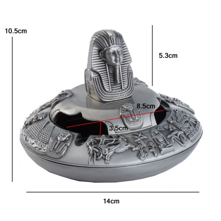 Retro Zinc Alloy Egyptian Pharaoh Shape Ashtray With Lid, Size: 15x15x10cm(Tin)