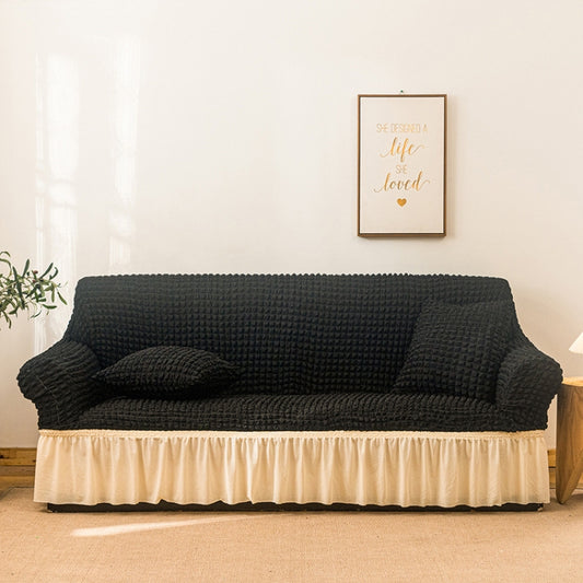 Living Room Stretch Full Coverage Skirt Style Sofa Cover, Size: Double M 145-185cm(One-color Black)