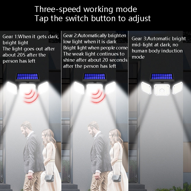 132 COB Solar 3-Head Rotatable Wall Lights Human Sense Outdoor Waterproof Garden Street Light