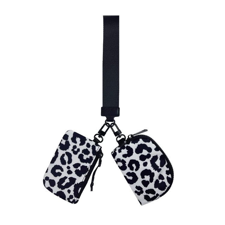 Borsa da polso portatile 2 in 1 Porta carte Mini Borsa porta monete (Leopardo bianco nero)