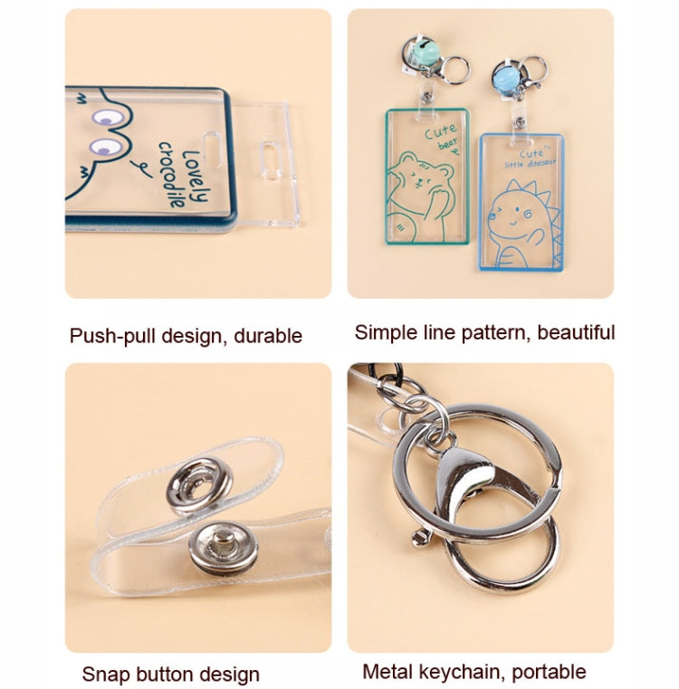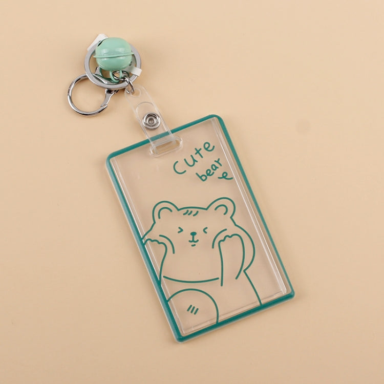 2 PCS Transparent Acrylic Push Pull Card Sleeve Bell Keychain Ring ID Card Sleeve(Bear)