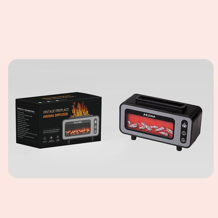 200ml Fireplace Flame Aromatherapy Air Humidifier USB Colorful Night Light Essential Oil Diffuser(Black)