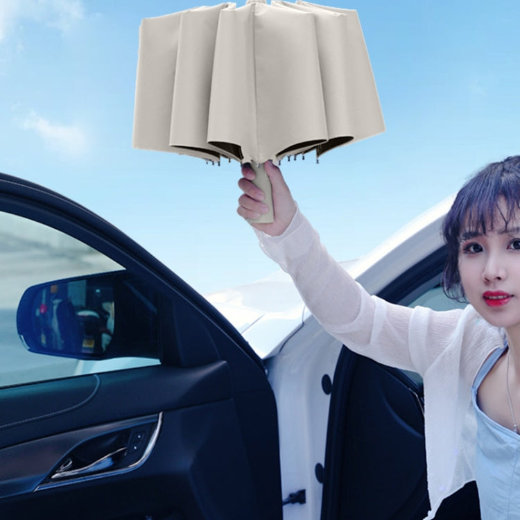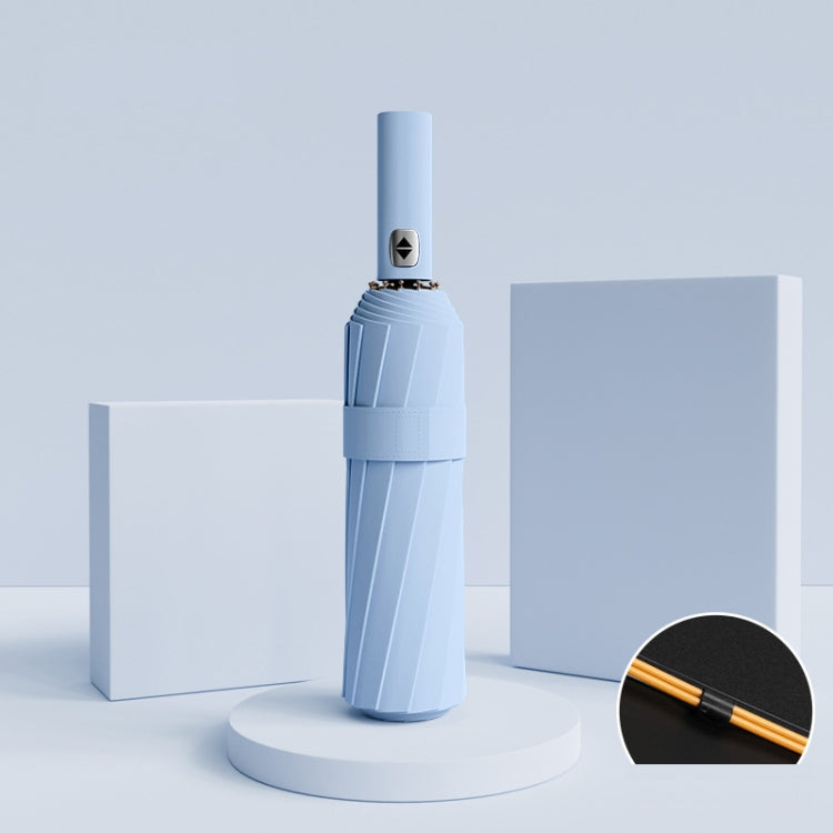 24 Bones Vinyl Folding Umbrella Sunny and Rainy Fully Automatic Sun Shading Umbrella(Sky Blue)
