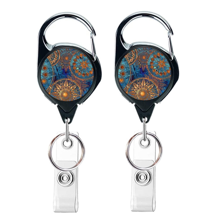 2pcs 65cm Retractable Pull Badge Reel Vintage Compass Map Name Tag Card Badge Holder(Mandala)