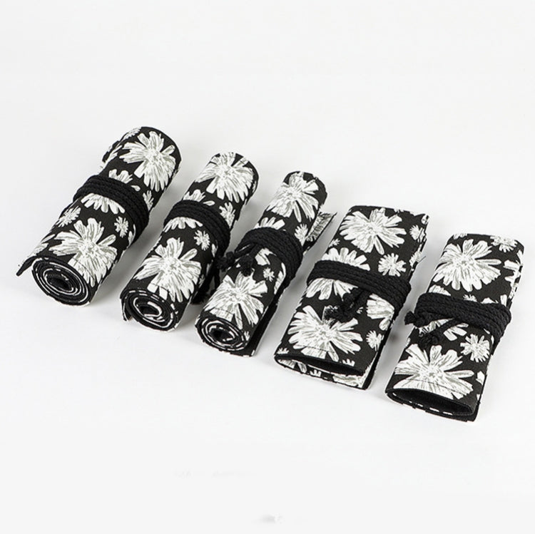 48 Holes Snowflake Print Handmade Canvas Pen Curtain Large Capacity Roller Pen Bag Sketch Color Pencil Stationery Box