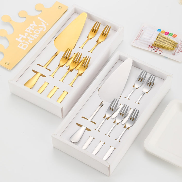 6pcs/set Stainless Steel Cake Knife And Fork Set, Color: Silver With 2-tine Forks