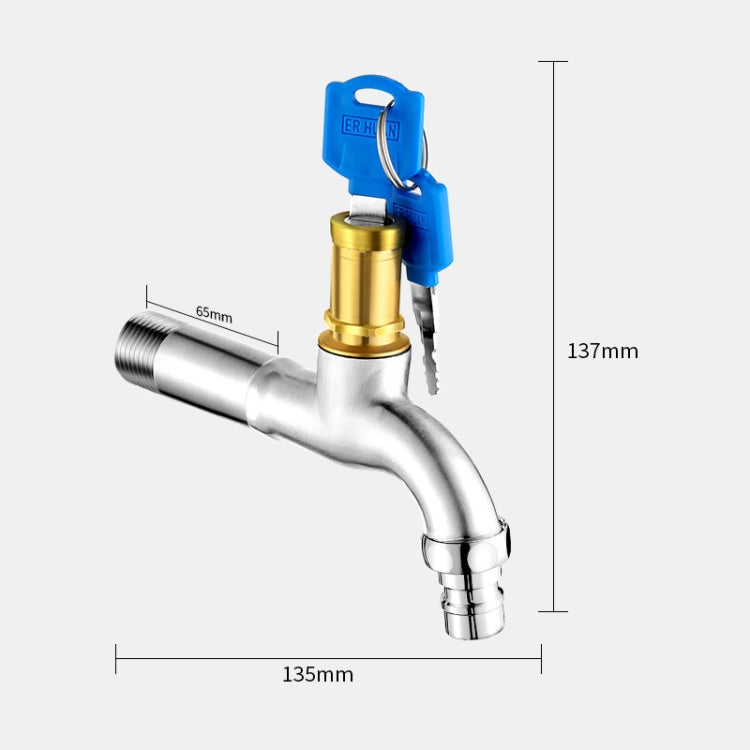 Household Faucet With Lock Outdoor Anti-theft 4 Minute Faucet, 规格: Key 304 Stainless Steel Long Washer Spout