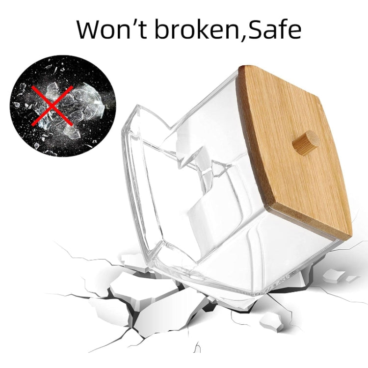Organizer per bastoncini di cotone che perde, custodia per cosmetici in acrilico per riporre gioielli (coperchio in bambù)