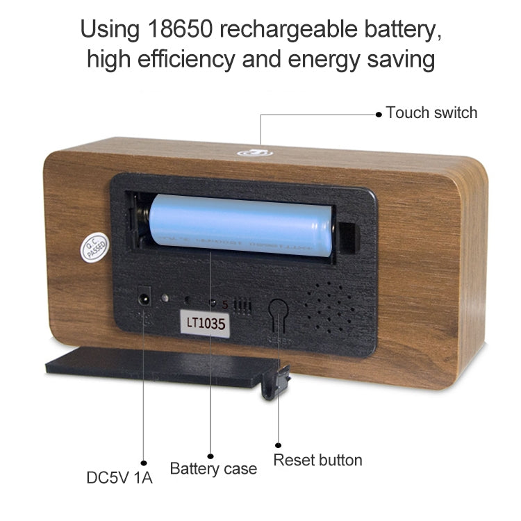 LT-1035 LED Display Digital APP Smart Alarm Clock(Blue Light Black Wood)