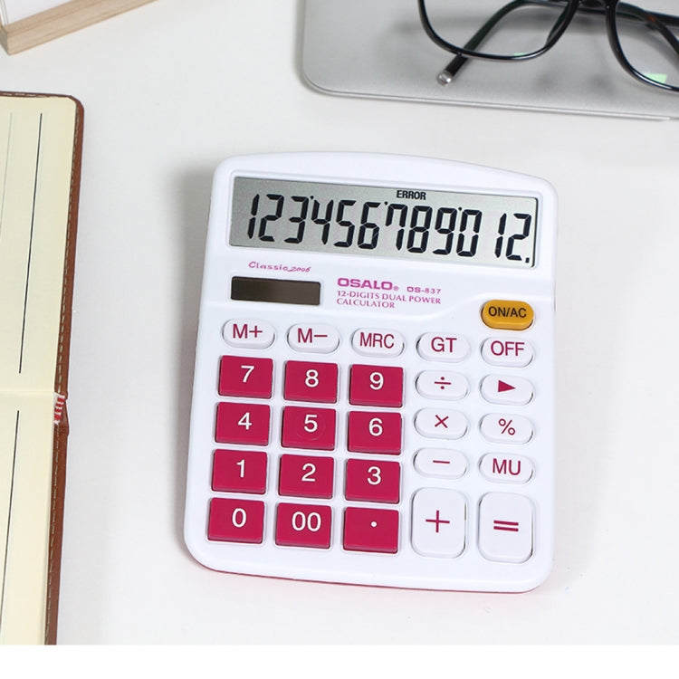 OSALO OS-837VC 12 Digits Colorful Desktop Calculator Solar Energy Dual Power Calculator(Rose Red)