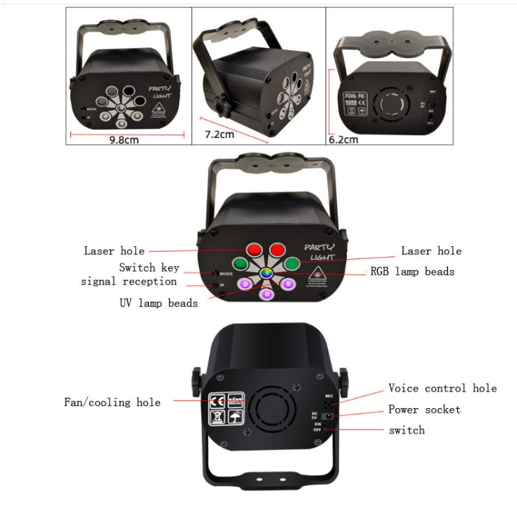 7. Colorful LED background effect + UV reflection + 60 patterns of red and green laser
