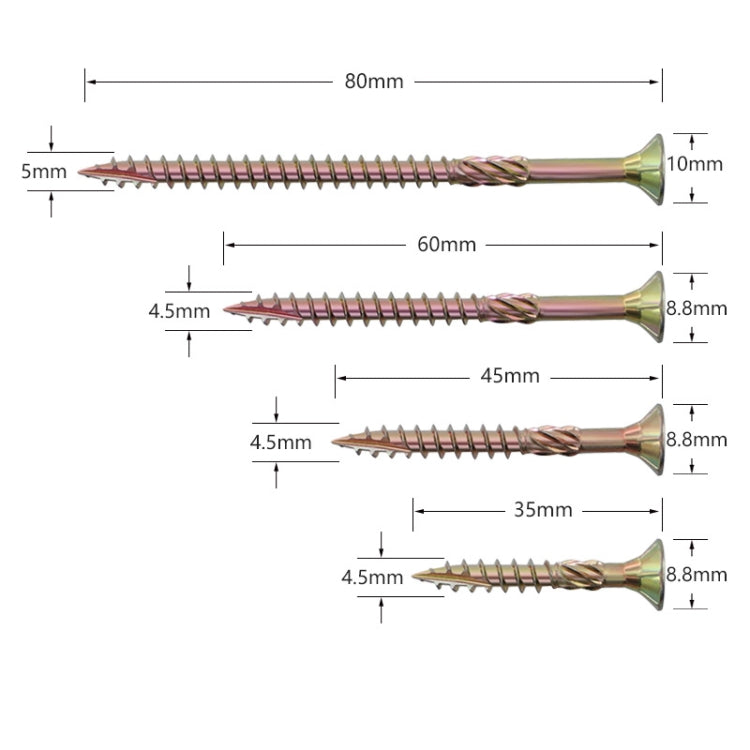 RUITOOL T25 100pcs Woodworking Screws Torx Self Tapping Screws 5 x 80mm