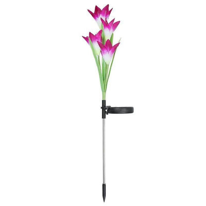 Simulated Lily Flower 4 Heads Solar Powered Outdoor IP55 Waterproof LED Decorative Lawn Lamp, White Light (Purple)