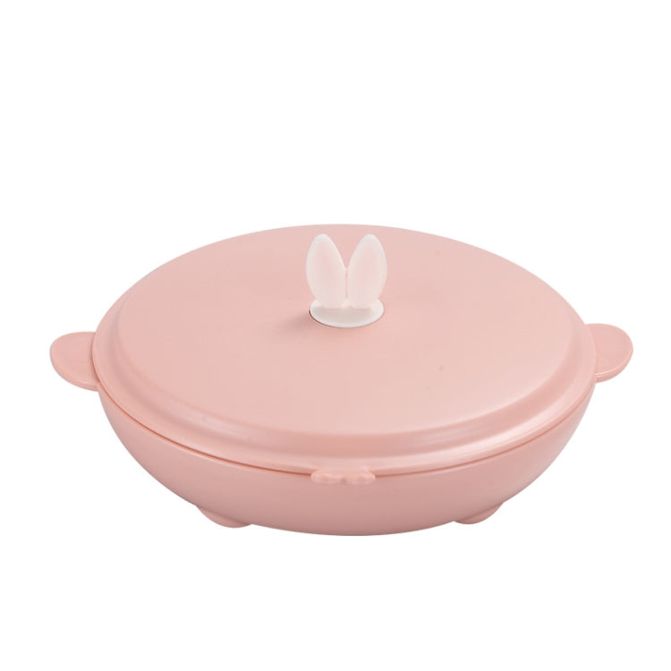 Stainless Steel Baby Dinner Plate Cartoon Rabbit Ears Shape Lattice Student Tableware Infant Food Supplement Training Rice Bowl Fast Food Plate(Pink)