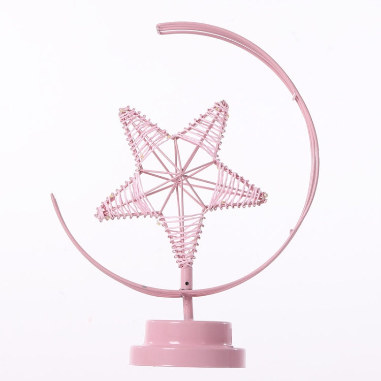 Star Moon Shape Iron Night Light Decorative Light, Battery Version (Pink)