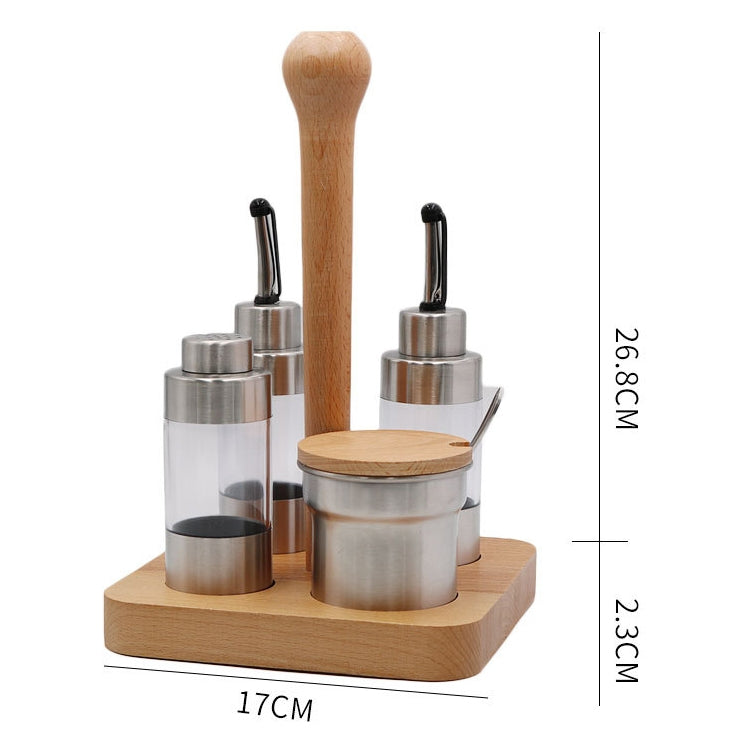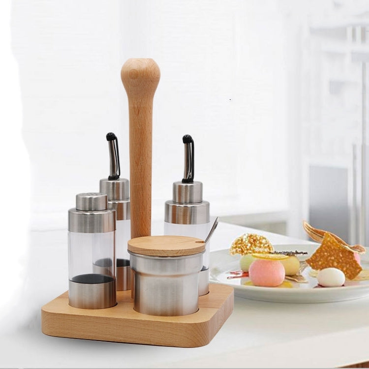 Wooden Creative Seasoning Jar Set Kitchen Rack(Square)