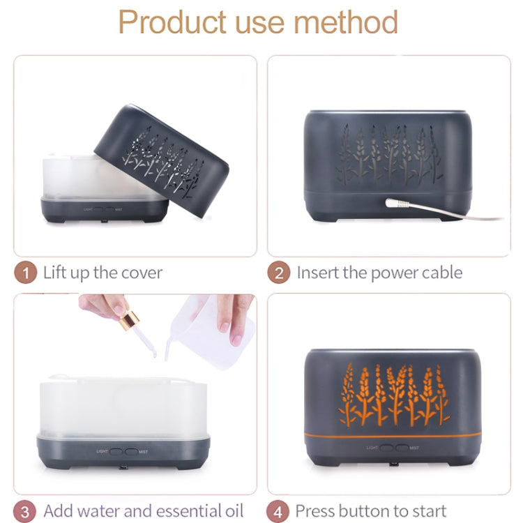YX-1690 Wood Grain Aroma Diffuser Hollow Flame Humidifier(Black)